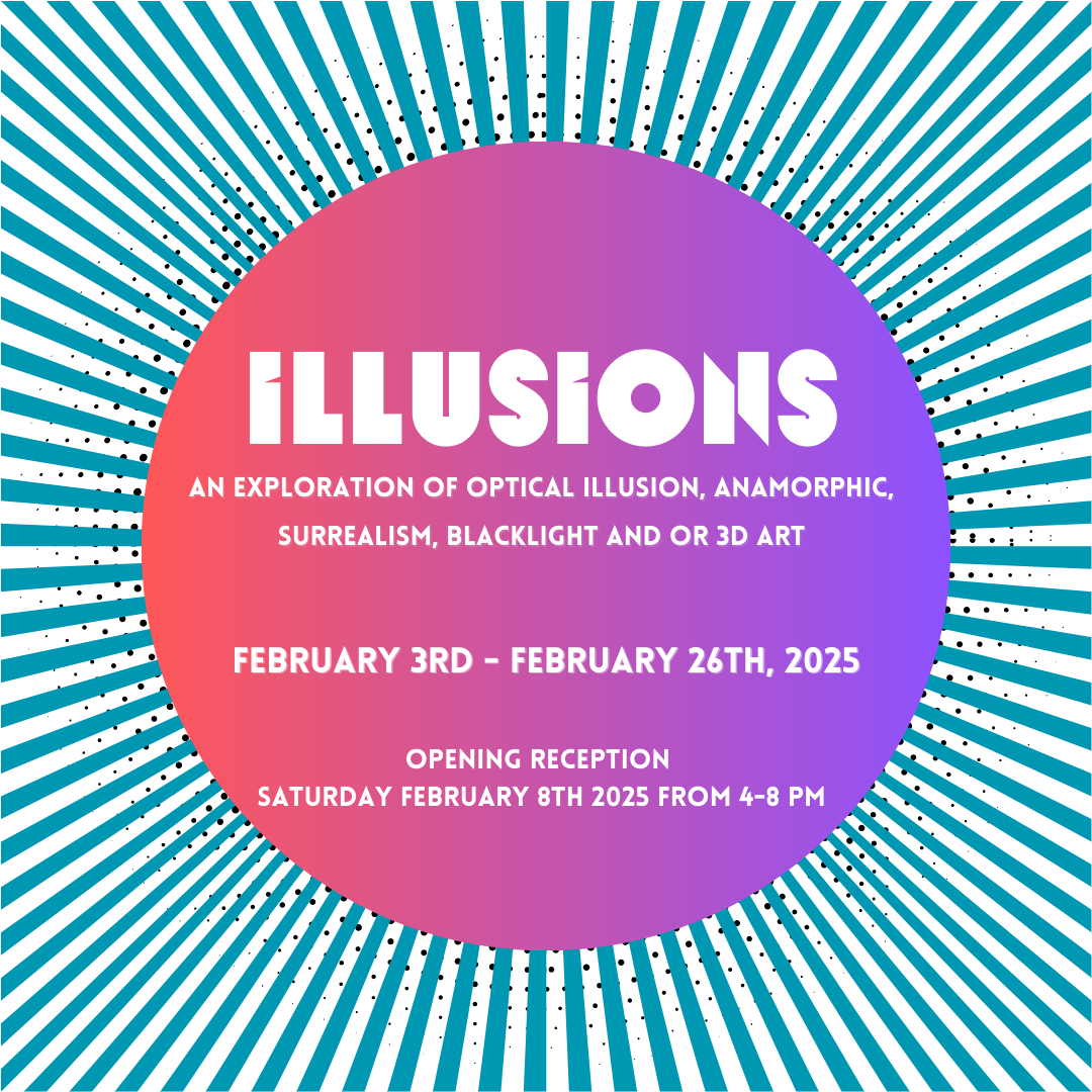 Mosaic Art Collective announces an open call for our first 2025 show, Illusions. This exhibition seeks work that challenges perceptions. Whether an optical illusion, anamorphic, surrealism, blacklight art—the exploration of illusion is the focus. Artwork for this show should invite viewers to question reality and the ways we interpret the world around us.